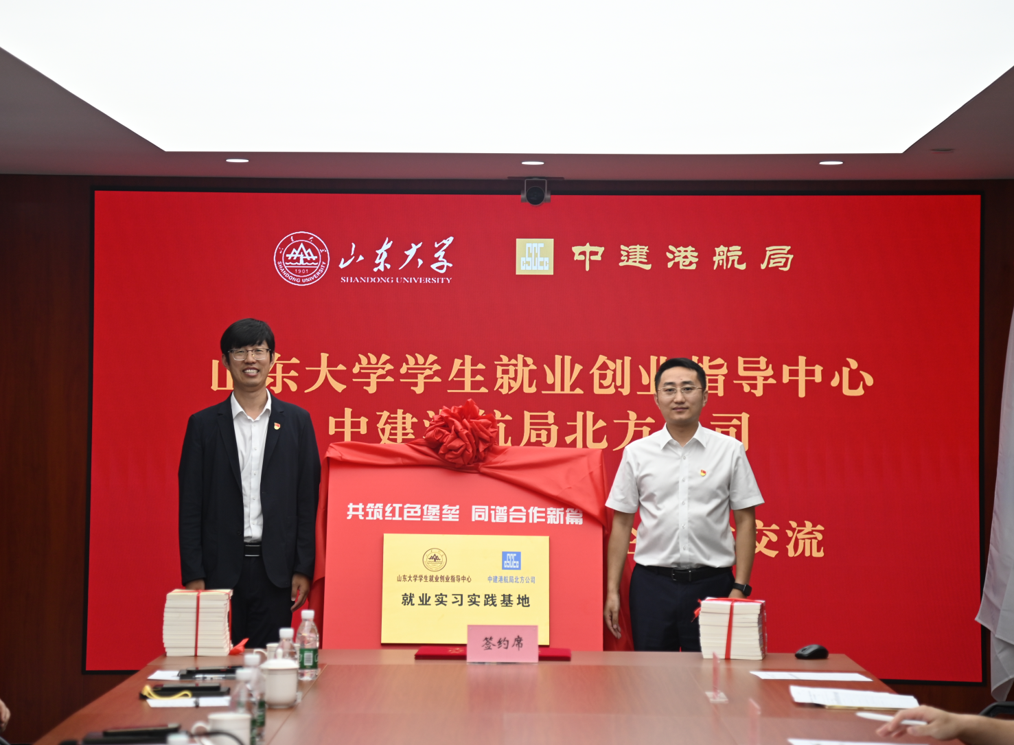 期间,全体党员参观中国共产党党史馆,重温入党誓词,观看中建港航局企业形象片。双方代表签订共建协议书,并为“就业实习实践基地”揭牌。