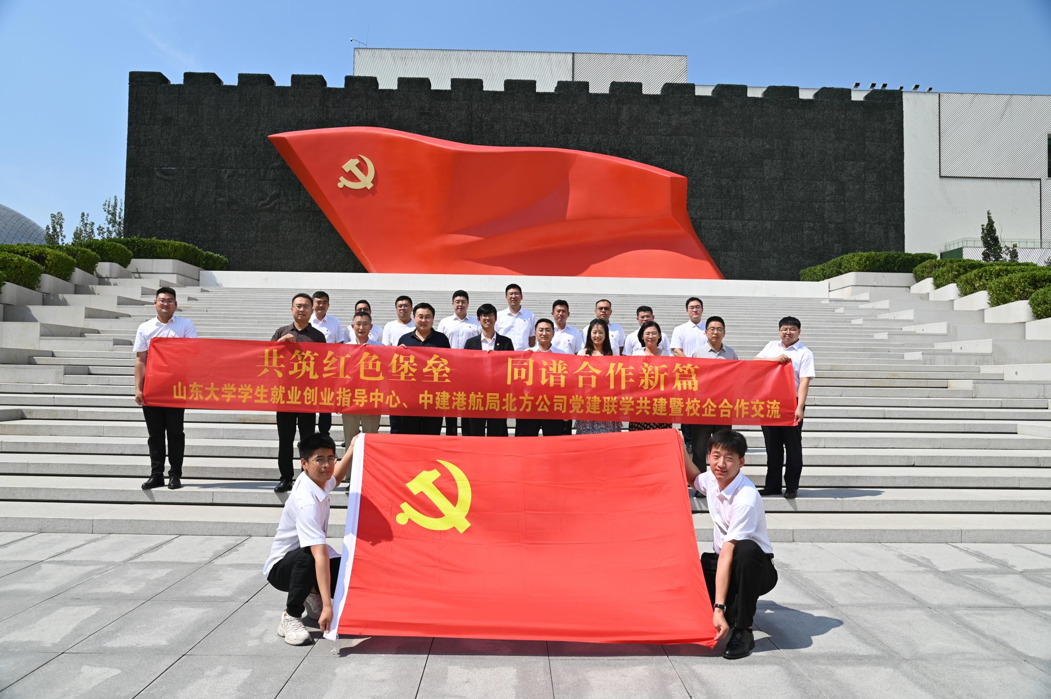期间,全体党员参观中国共产党党史馆,重温入党誓词,观看中建港航局企业形象片。双方代表签订共建协议书,并为“就业实习实践基地”揭牌。